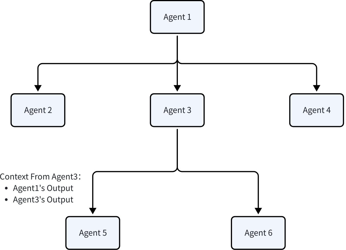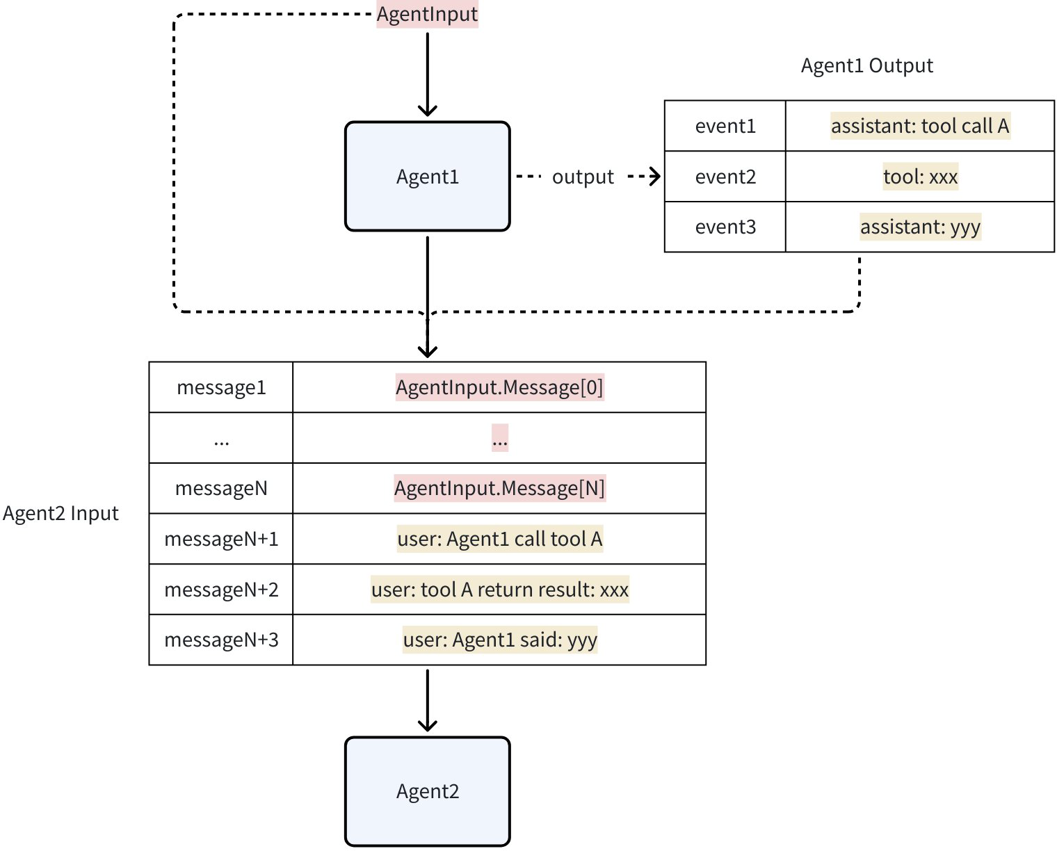 • History: each agent’s AgentEvent is recorded and converted into the next agent’s input. By default, assistant/tool messages from other agents become user messages for the current agent, supplying factual context without confusing roles.